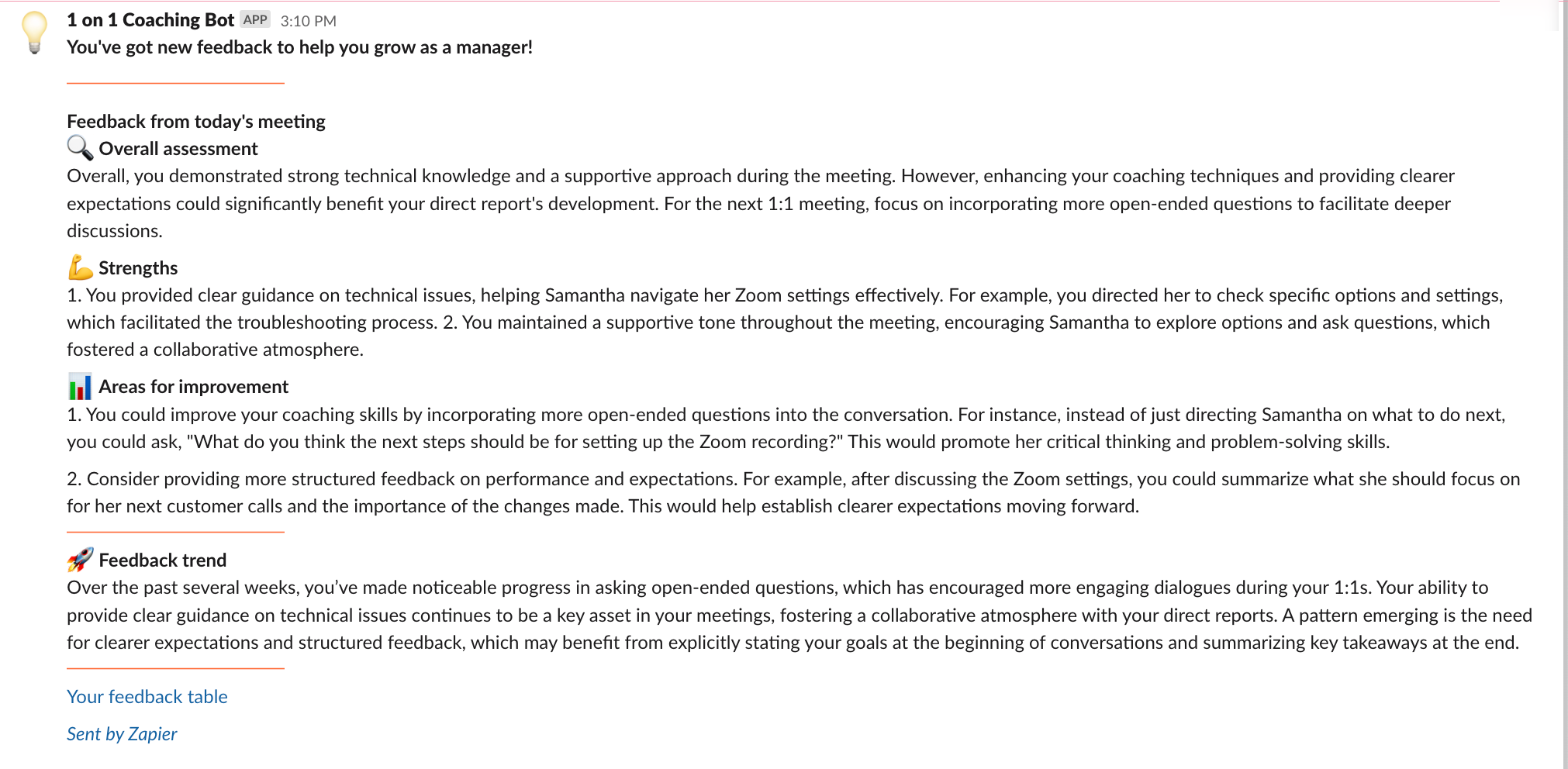 This template builds you a virtual coach that rapidly improves the way you lead one-on-ones. Here’s how it works: